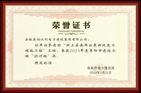 “潁州杯”榮譽證書