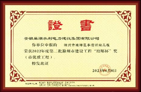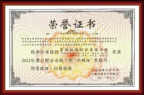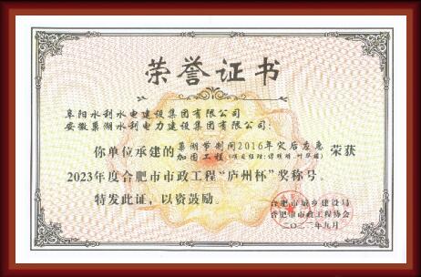 “廬州杯”榮譽證書