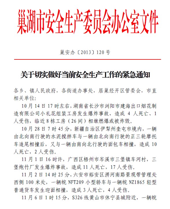 現將市安委辦《關于切實做好當前安全生產工作的緊急通知》(巢安辦[2013]120號)轉發給你們,請結合本行業安全生產管理特點,認真貫徹執行。