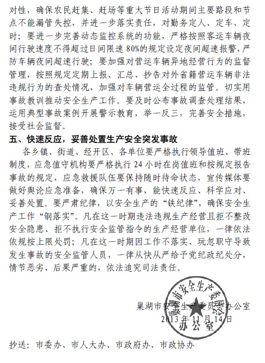 抄送:合肥市城鄉建委,巢湖市安委辦