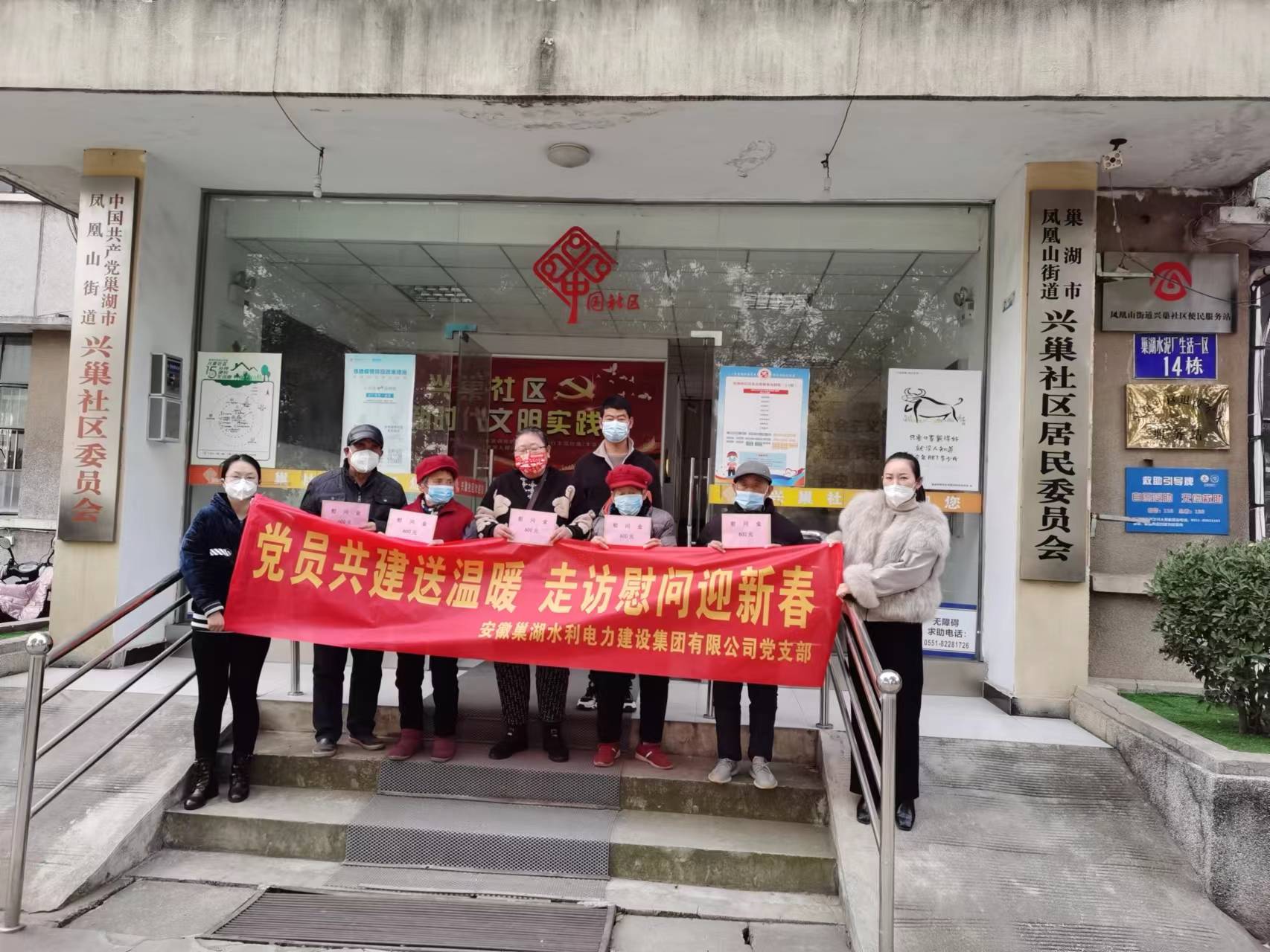 新春即將來臨,為了讓困難群眾渡過歡樂祥和的新春佳節,今天上午,社會愛心企業安徽巢湖水利電力建設集團有限公司到鳳凰山街道興巢社區送溫暖,與街道工作人員一起慰問社區困難群眾,為他們送上節日的祝福,讓他們真切感受到黨和社會對他們的關心關愛。