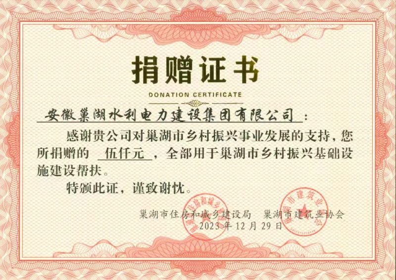 贈(zèng)人玫瑰,手有余香。安徽巢湖水利電力建設(shè)集團(tuán)有限公司響應(yīng)巢湖市政府及建設(shè)主管部門關(guān)于鄉(xiāng)村振興建設(shè)幫扶活動(dòng),促進(jìn)美好鄉(xiāng)村建設(shè),彰顯忠誠(chéng)擔(dān)當(dāng),積極參與巢湖建筑業(yè)協(xié)會(huì)開展的鄉(xiāng)村振興幫扶捐贈(zèng)活動(dòng),在2023年10月23日捐款5000元用于銀屏鎮(zhèn)岱山村路燈維修、破損道路維修、脫貧戶破損門窗維修。安徽巢湖水利電力建設(shè)集團(tuán)有限公司以實(shí)際行動(dòng)助力鄉(xiāng)村振興,積極參與到鄉(xiāng)村振興過程中來,充分彰顯了企業(yè)的責(zé)任和擔(dān)當(dāng)。